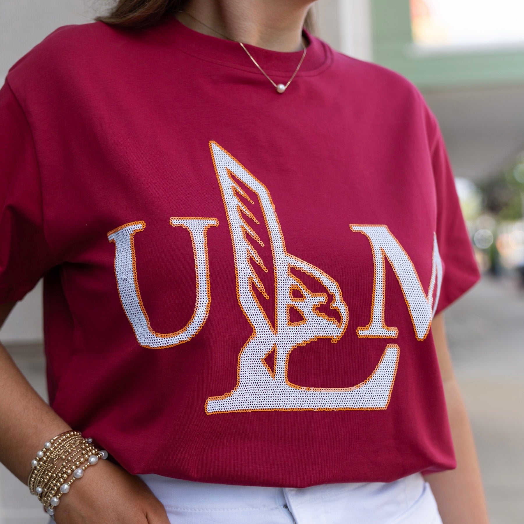 Game days just got a lot cuter! Our officially licensed ULM sparkle tee brings the perfect mix of school spirit and standout style. Designed for Warhawk fans who love a little sparkle, this comfy tee is perfect for tailgates, touchdowns, and everything in between.